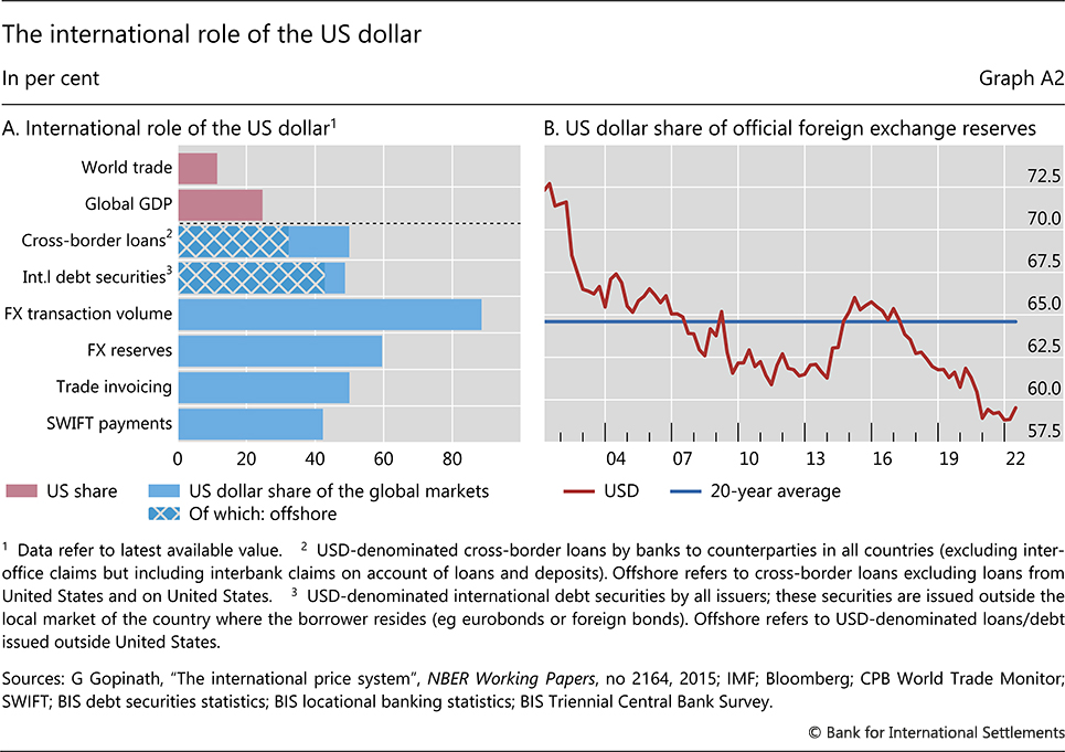 The United States dollar (USD) remains the world’s principal reserve currency and the most widely used for international trade. The USD accounts for a 60% – albeit declining – share of foreign exchange reserves worldwide. It also accounts for around 40% of SWIFT payments and 85% of FX transaction volume.